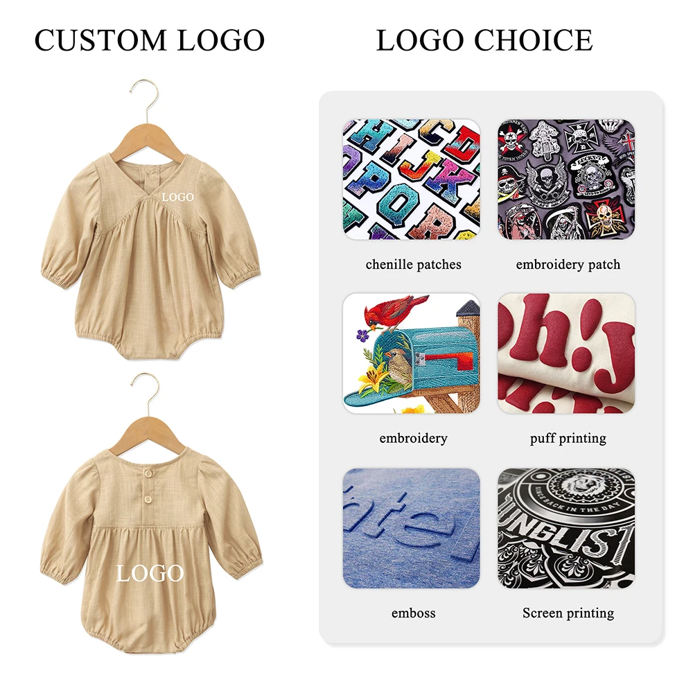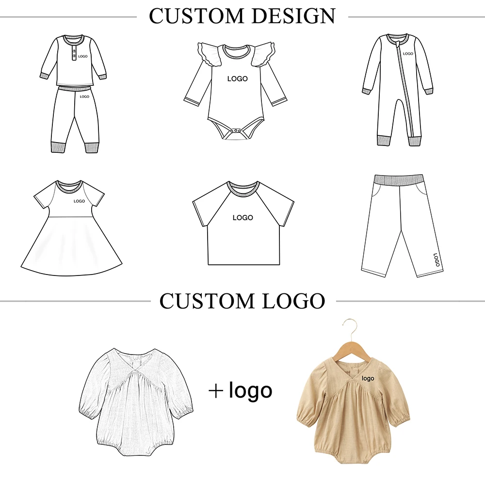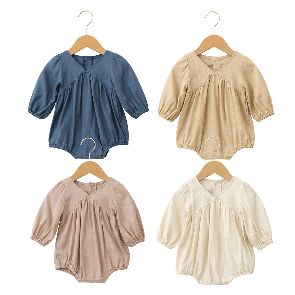 Custom Logo Designer Wholesale Toddler Cloths With Snap Button Elastic Cuffs Solid Color Unisex Baby Rompers